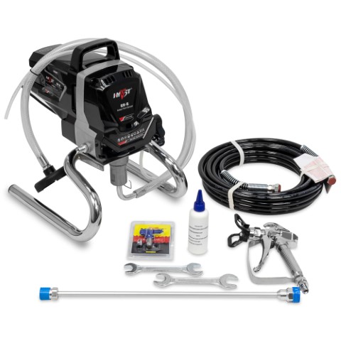 Поршневой безвоздушный окрасочный аппарат для бытового применения у себя дома либо на даче. Окрасочный аппарат работает только на один краскопульт, предназначен для распыления краски на дерево, металл, фасад. Может использоваться с красками средней и низкой вязкости на небольших покрасочных объемах до 100 квадратов в день. Окрасочный аппарат можно применять для нанесения пропитки на дачный дом или деревянный забор, нанесения безабразивной грунтовки на стены и потолки у себя в квартире, для окраски сплошного дачного забора.