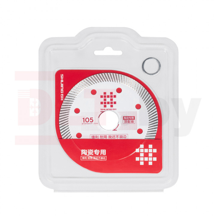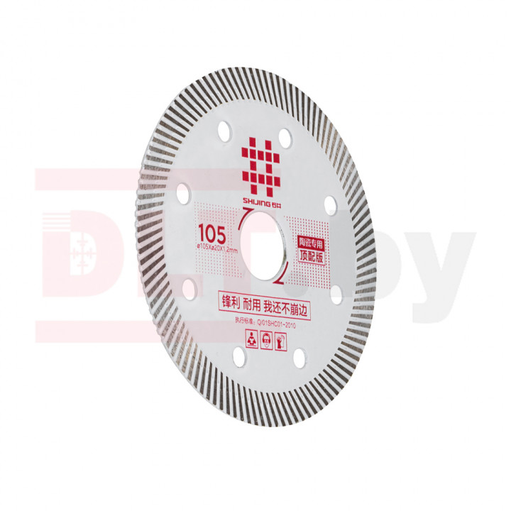 Диск алмазный для плиткореза, SHIJING, 105мм, Сeramics TOP для станков Shijing и WANDELI диаметром 105мм и посадочным отверстием 20мм предназначен для деликатной резки керамогранита, кварцевого агломерата и твердой керамики. Ультратонкий алмазный слой 1,2 мм позволяет выполнять сверхточный, деликатный рез за счет меньшего сопротивления материала