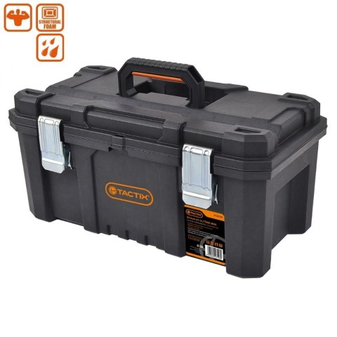 Кейс для инструментов Tactix, арт.320390 изготовлен из очень прочного материала, который гарантирует долговечность конструкции и устойчивость к механическим повреждениям. Специальный пластик прочный и эластичный (не дубовый и хрупкий).