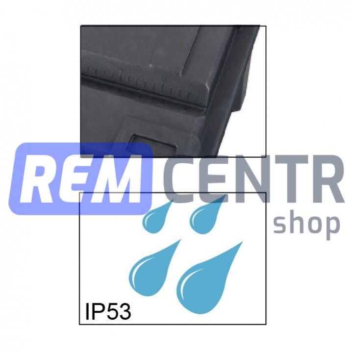 Имеет прорезиненные стыки которые обеспечивают IP53. Сопротивление давлению до 120 кг.