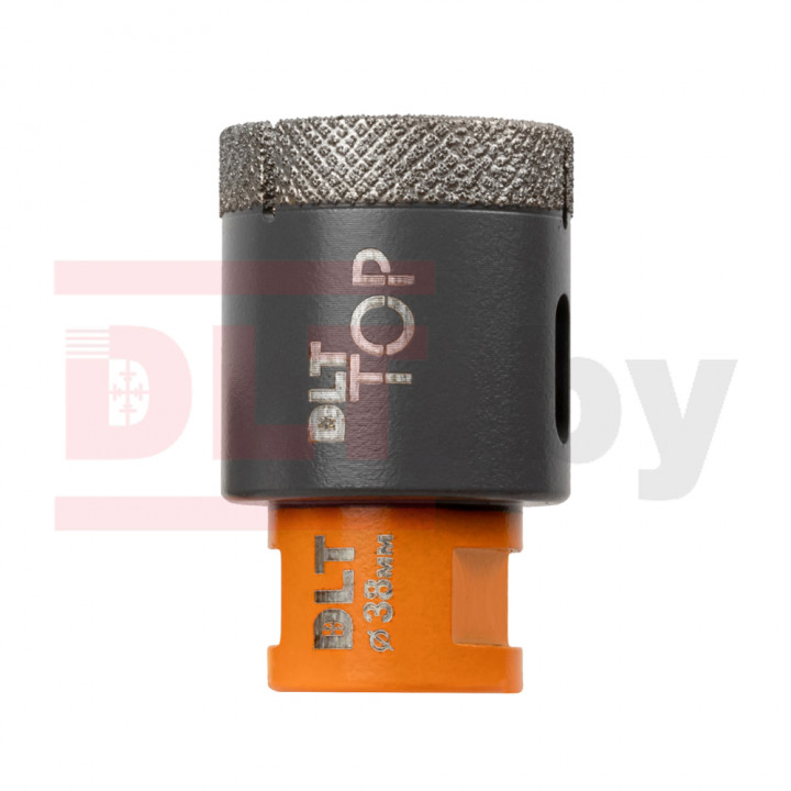 Алмазные коронки DLT TOP – это профессиональные алмазные коронки Премиум класса, произведенные по особенной технологии вакуумно-жидкостного спекания при котором алмазы расположены в строго распределенном порядке за счет чего коронки позволяют производить быстрое и чистое сверление с минимальными сколами (на уровне коронок с гальваникой) с сохранением высокой скорости сверления и большого ресурса, даже без использования водяного охлаждения, которыми характеризуются коронки вакуумной пайки, это лучшее что есть на данным момент из коронок данного типа.