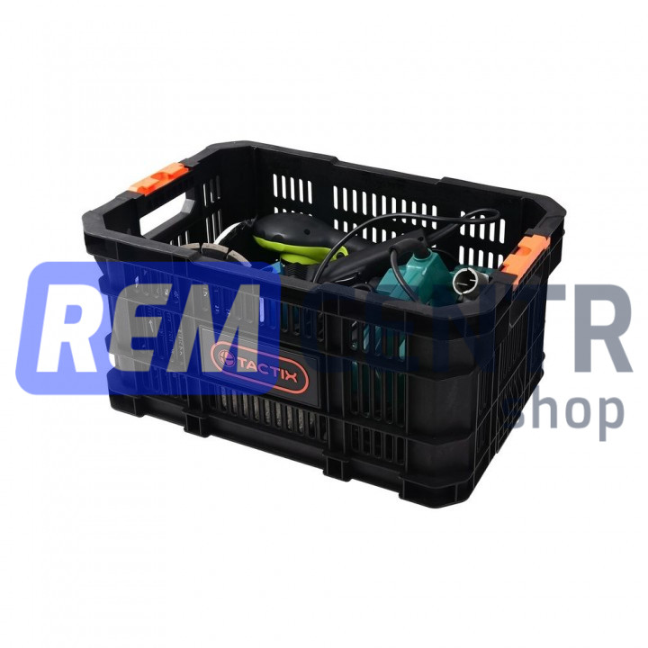 Корзина предназначена для модульной системы хранения Tactix (на систему 3в1 Tactix, арт.320382 становиться только как верхний компонент). Изготовлена из очень прочного материала, который гарантирует долговечность конструкции и устойчивость к механическим повреждениям. Специальный пластик прочный и эластичный (не дубовый и хрупкий).