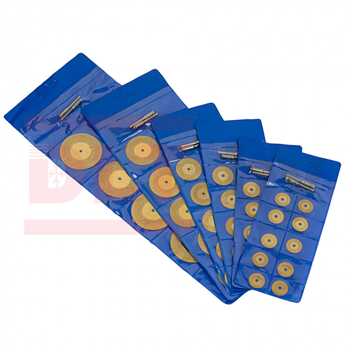 Режущая кромка содержит мелкие частицы, которые равномерно распределены по поверхности. Наборы алмазных дисков для работы гравировальной машинкой, предназначены для отрезных и зачистных работ.