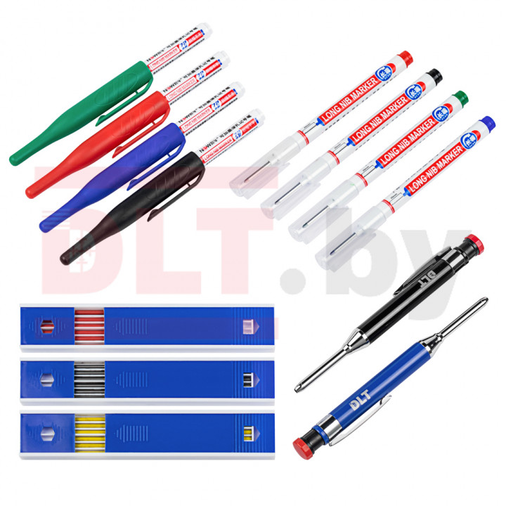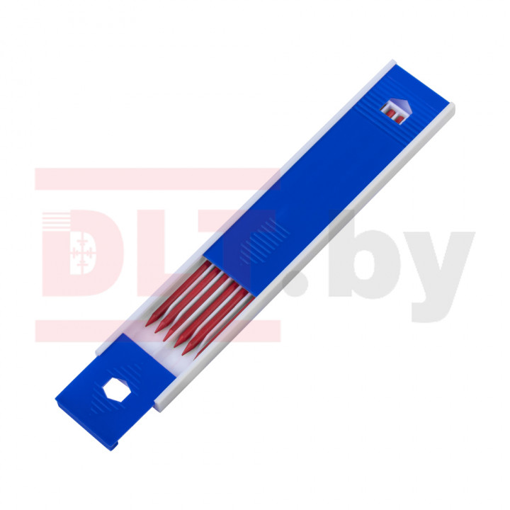 Набор сменных стержней к карандашам (набор грифелей), красного цвета, прекрасно чертить на разных материалах: бетоне, кирпиче, дереве и других поверхностях, благодаря чему можно легко и точно обозначать места точек крепления и раскрашивать зоны, которые требуют особого внимания. Данные грифели универсальные и также устанавливаются в строительный карандаш DLT, могут применяться для Pica – Dry.